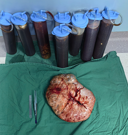 11月29日上午,宝丰县人民医院普外泌尿外科与麻醉科团队成功为一名女患者完成腹腔巨大肿物切除手术,完整取出重达30多斤的巨大肿块,并吸出肿块内积液16000ml,这场高难度手术历时2个多小时,整个手术过程中,患者生命体征保持平稳,术后恢复顺利。  据了解,患者已75岁高龄,长期受肿块折磨,曾在其他医院保守治疗效果不好,因肿瘤太大导致呼吸困难,双下肢水肿,病人及家属一度想放弃治疗,30多斤的肿物长期压迫肠道、肝脏等重要器官,开展手术会造成视野狭窄、操作空间受限,每一步分离都需毫米级精准,稍有不慎便可能引发大出血或器官损伤。  针对这一特殊病例,普外泌尿外科与麻醉科团队反复开展术前讨论,详尽评估手术风险并制定应对策略,采用“仔细分离粘连,精准结扎控制出血”策略,避开关键血管,每一刀精准到毫米,并制定“慢诱导气管插管+持续血流动力学监测”方案,术中实时调控麻醉深度,当肿物取出瞬间腹压骤降引发血压波动时,迅速输注血管活性药物稳定循环,为手术全程筑起安全屏障。 “此类巨大腹腔肿物虽体积庞大,但并非手术禁区。”普外泌尿外科副主任朱克周表示,对于巨大腹腔肿瘤患者而言,手术切除是首选诊疗手段,也是唯一生存路径。这类手术关键在于术前的精确判断与术中的细致操作,特别是在重大血管与多脏器关系复杂的情况下,外科医生的解剖知识、多学科技术、血管处理能力及临场判断力极为重要。今后,宝丰县人民医院将凭借精湛的专业技术和高尚的医德品质,为众多患者解除病痛,守护全县百姓生命健康